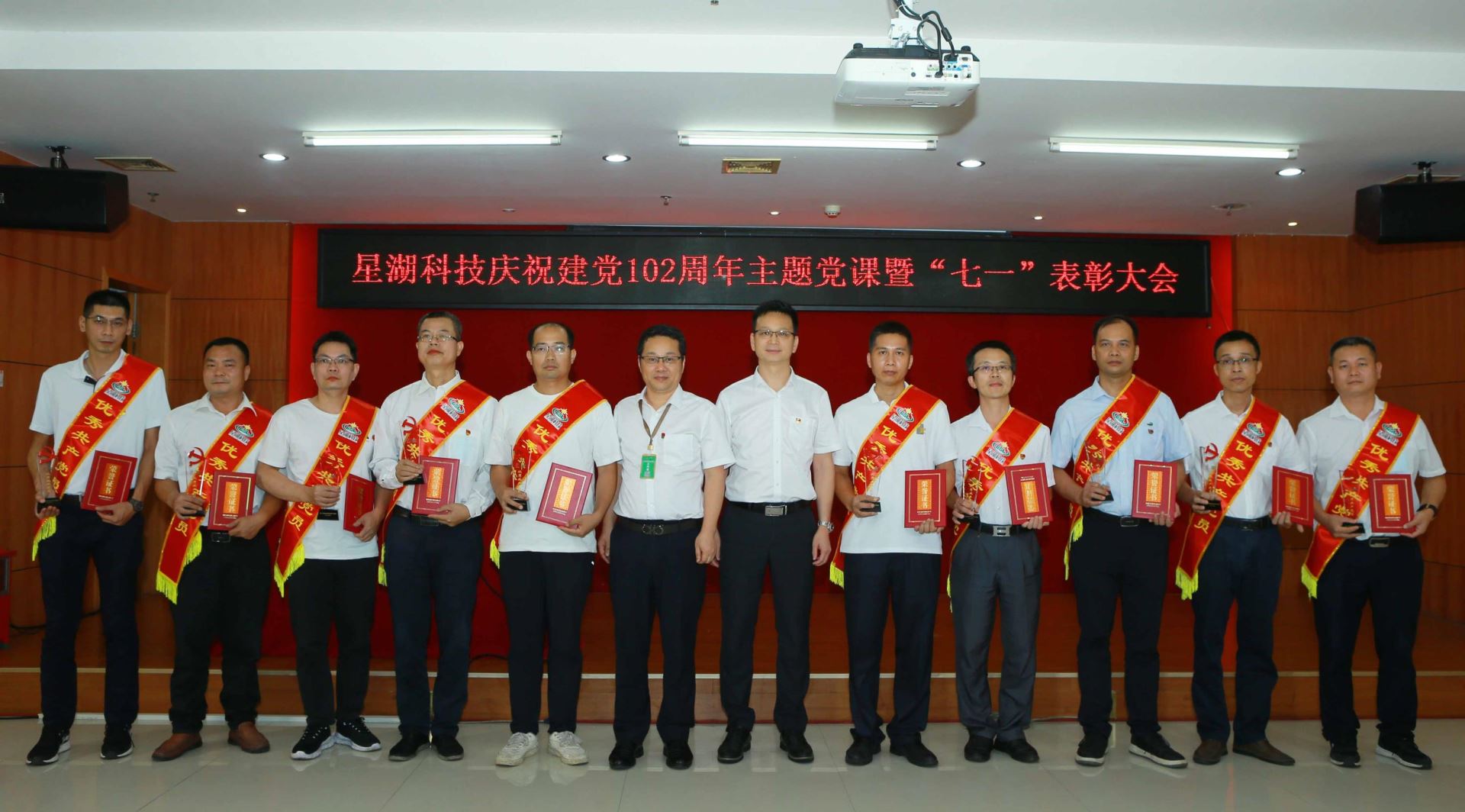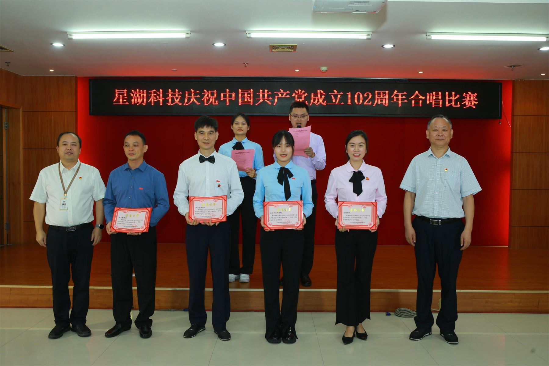 為熱烈慶祝中國共產黨成立102周年,樹立典型、表彰先進,激勵各級黨組織和廣大共產黨員、黨務工作者在公司融合發展、高質量發展新征程上奮力開拓、建功立業,6月28日下午,以“凝心鑄魂學思想 砥礪奮進新征程”為主題的星湖科技“七一”表彰大會暨慶祝中國共產黨成立102 周年合唱比賽活動在公司大樓B幢三樓會議室隆重舉行。公司在家的班子成員、中層以上管理人員與員工們歡聚一堂,熱烈慶祝中國共產黨成立102周年,共同歌頌偉大的中國共產黨,共同祝福祖國繁榮富強,祝愿星湖科技更加輝煌!