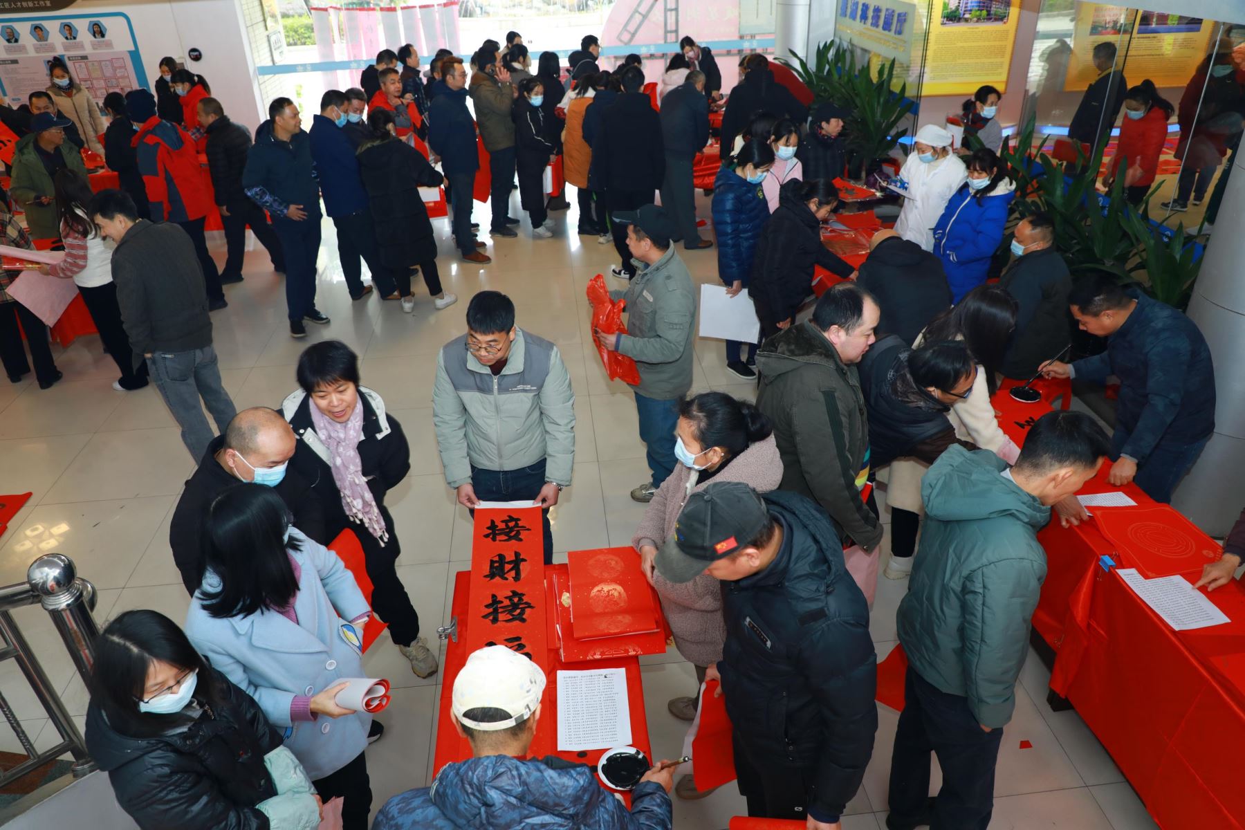 陣陣墨香指尖流,幽幽韻味心脾沁?;顒蝇F場,春聯紙、毛筆和硯臺整齊地擺放在桌面上,鮮紅的紙張渲染著濃濃的節日氛圍,書法老師們即席揮毫,壓紙、沾墨、起筆、收筆……一起一落之間,一副副飽含著濃濃年味、寓意吉祥的春聯和“?!弊直丬S然紙上,為即將到來的春節增添了濃濃的喜慶氛圍。載滿祝福的春聯,把濃濃的年味兒和新春的祝福送到廣大員工手里和心里,大家拿到寫滿祝福和美好